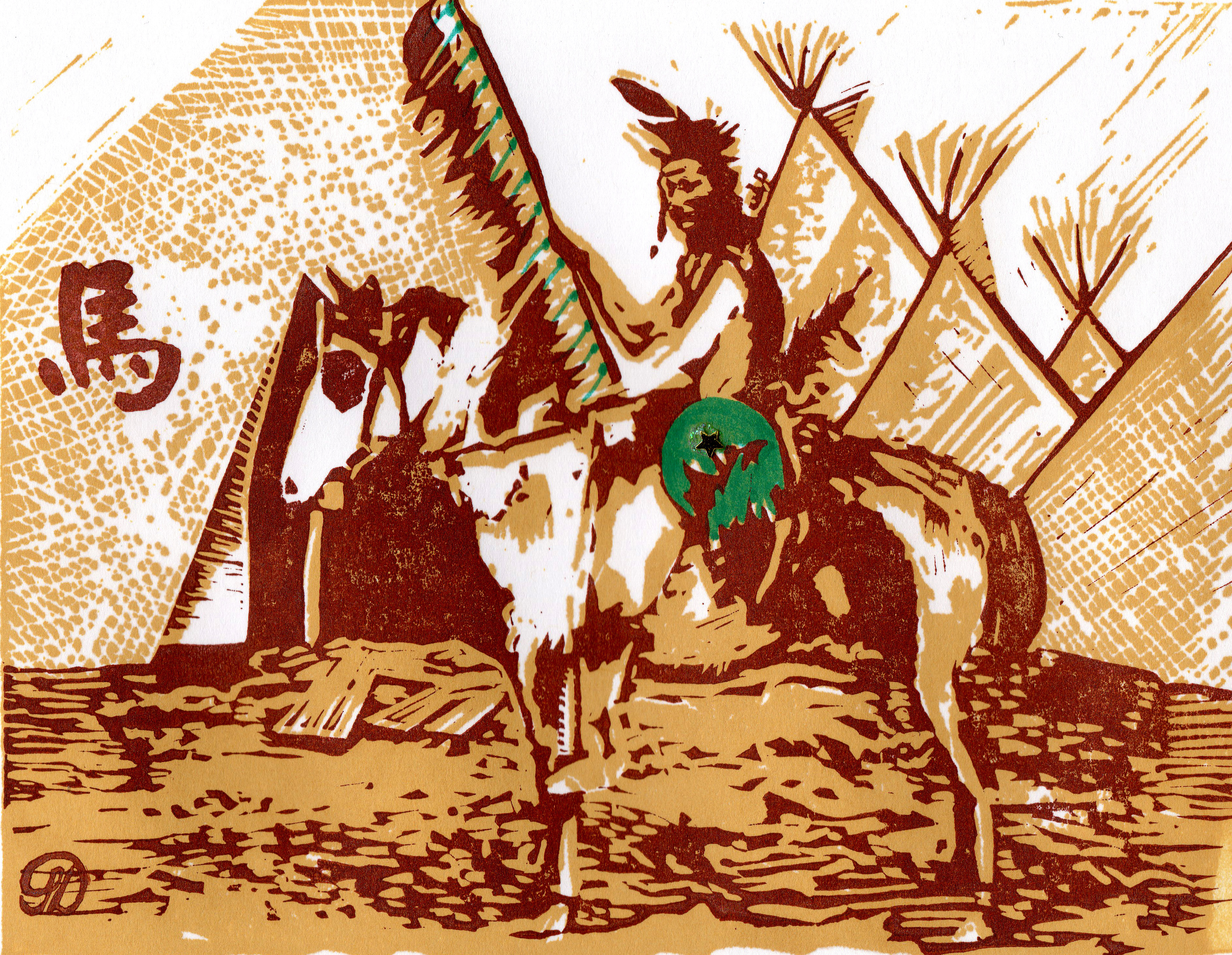This print is based on a photograph in the public domain of an Oglala Sioux brave posing for the camera.