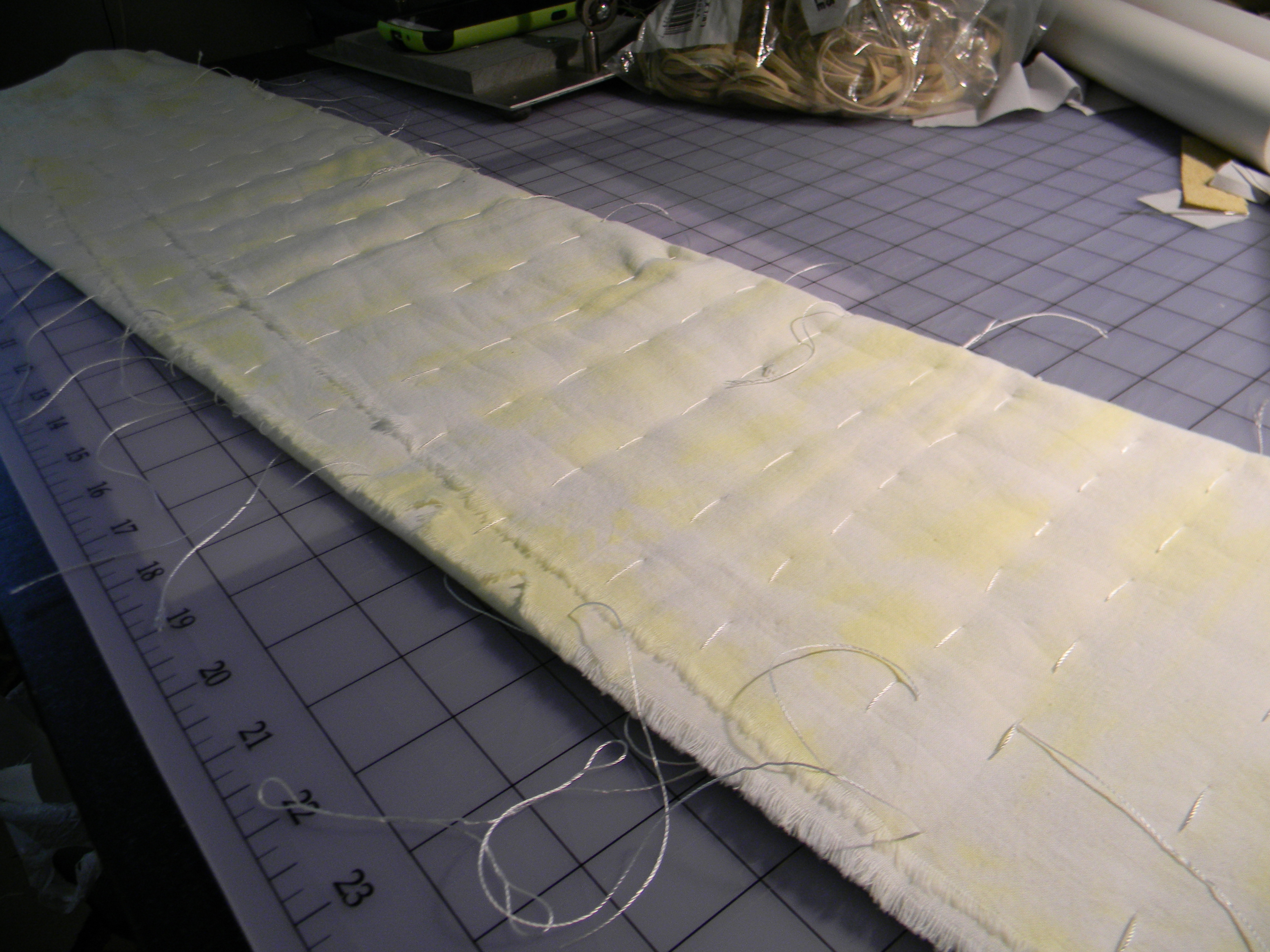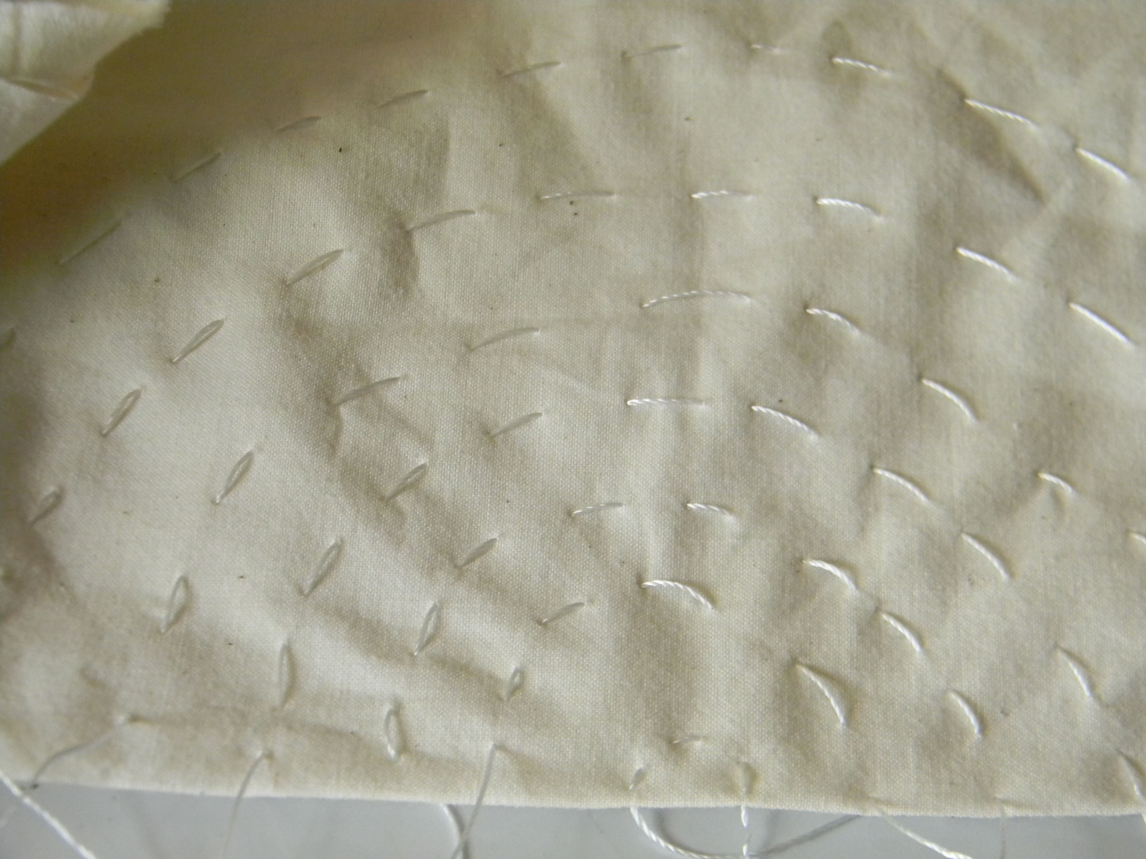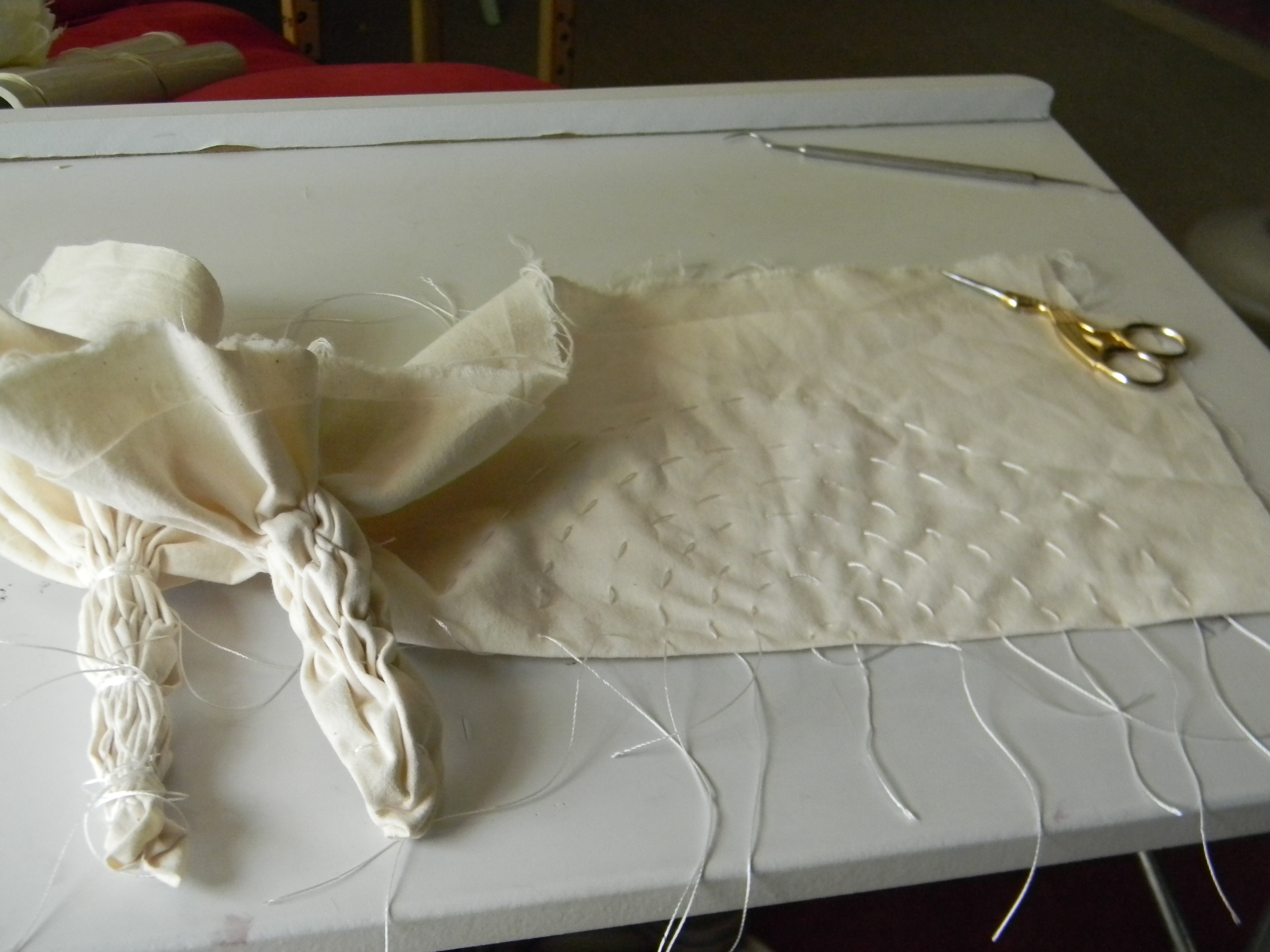 I spent quite a bit of the past two days preparing fabric for shibori dyeing. First, I had to take out all the string and thread form the first dye bath. It take a lot of time to iron, fold, pleat, iron, fold and to wind and tie fabric for this technique! But here’s the fabric after the first yellow dye bath, in varying states of preparation for the second: