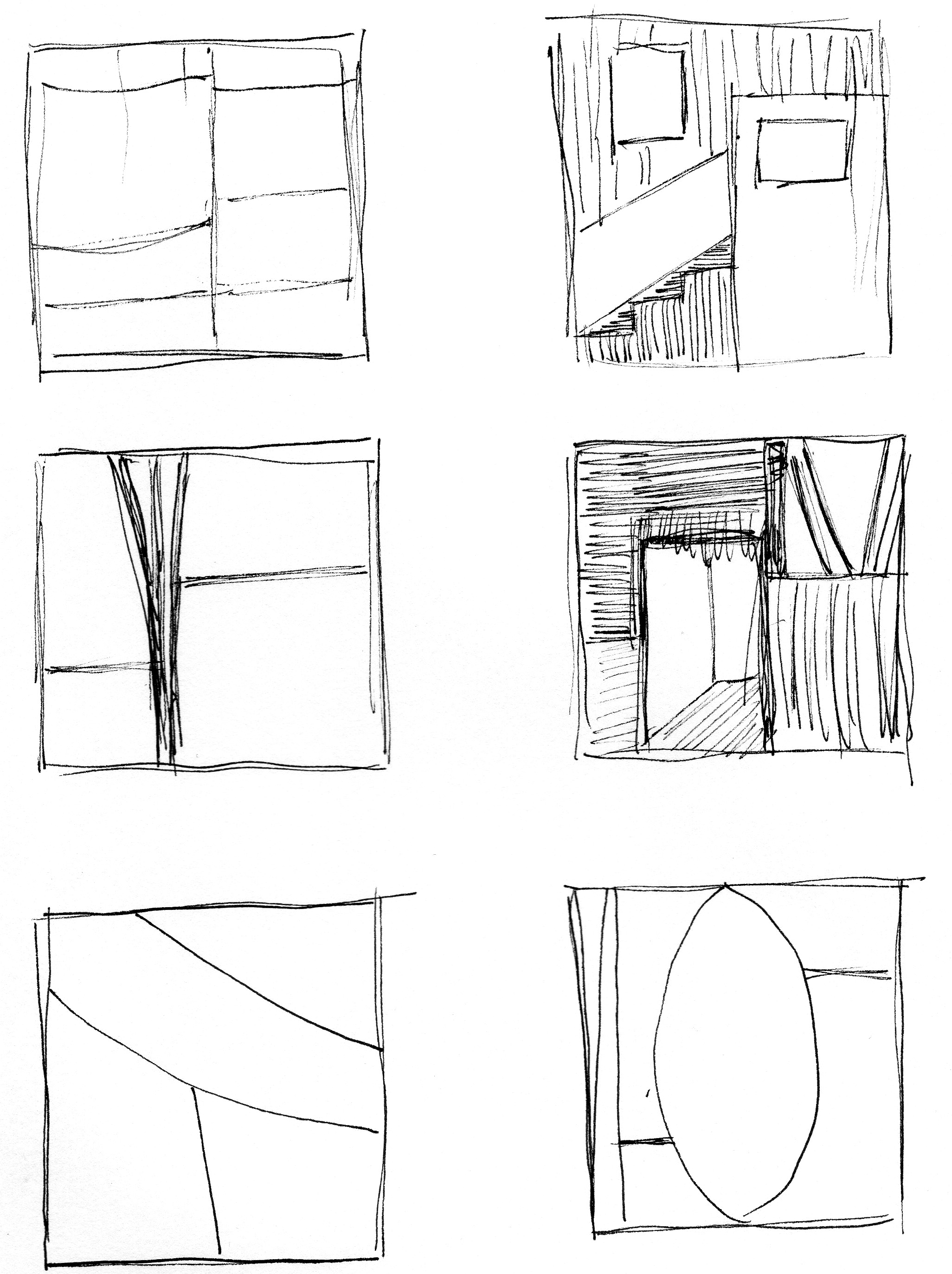 These little drawings are a form of visual brainstorming – you don’t judge them – you just throw them out there into your own personal little universe, hoping that some of them just might spin off. And some will indeed, work very well.