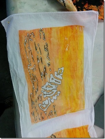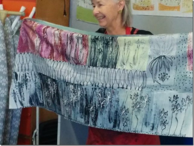 Also, Ann produced some fine works and was the only one not to work on textile, but on paper.                                                                             She was working on some stunning works in class but her art can be seen on her own website.