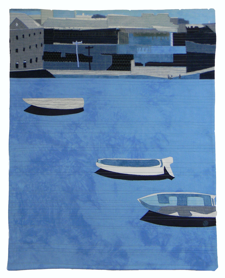 I’ve never used eco-felt, Janis, but love the redo of your design to flow with your attraction to the scene, especially the abstraction nature of the buildings, which look realistic from a distance. It also is very effective having the three boats with distinct shadows on the sunlit water.
