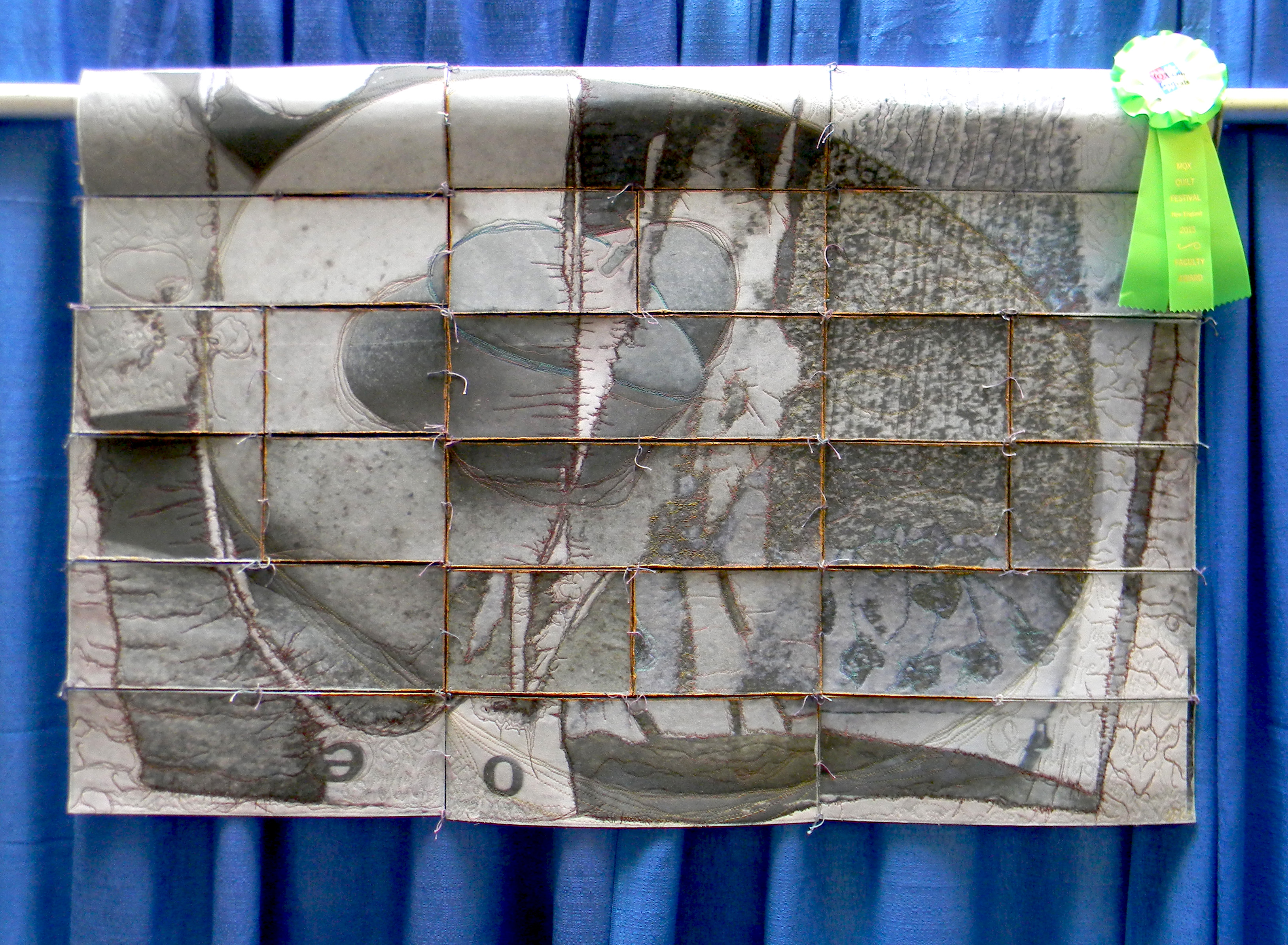 The Rocks Are Smiling won an award for Wen Redmond at the MQX Quilt Festival in Manchester, NH this week. Her fabulous, abstracted photograph on fiber is an innovative construction and one of the precursers for her mini “puzzle quilts,” recently published in Quilting Arts Magazine.