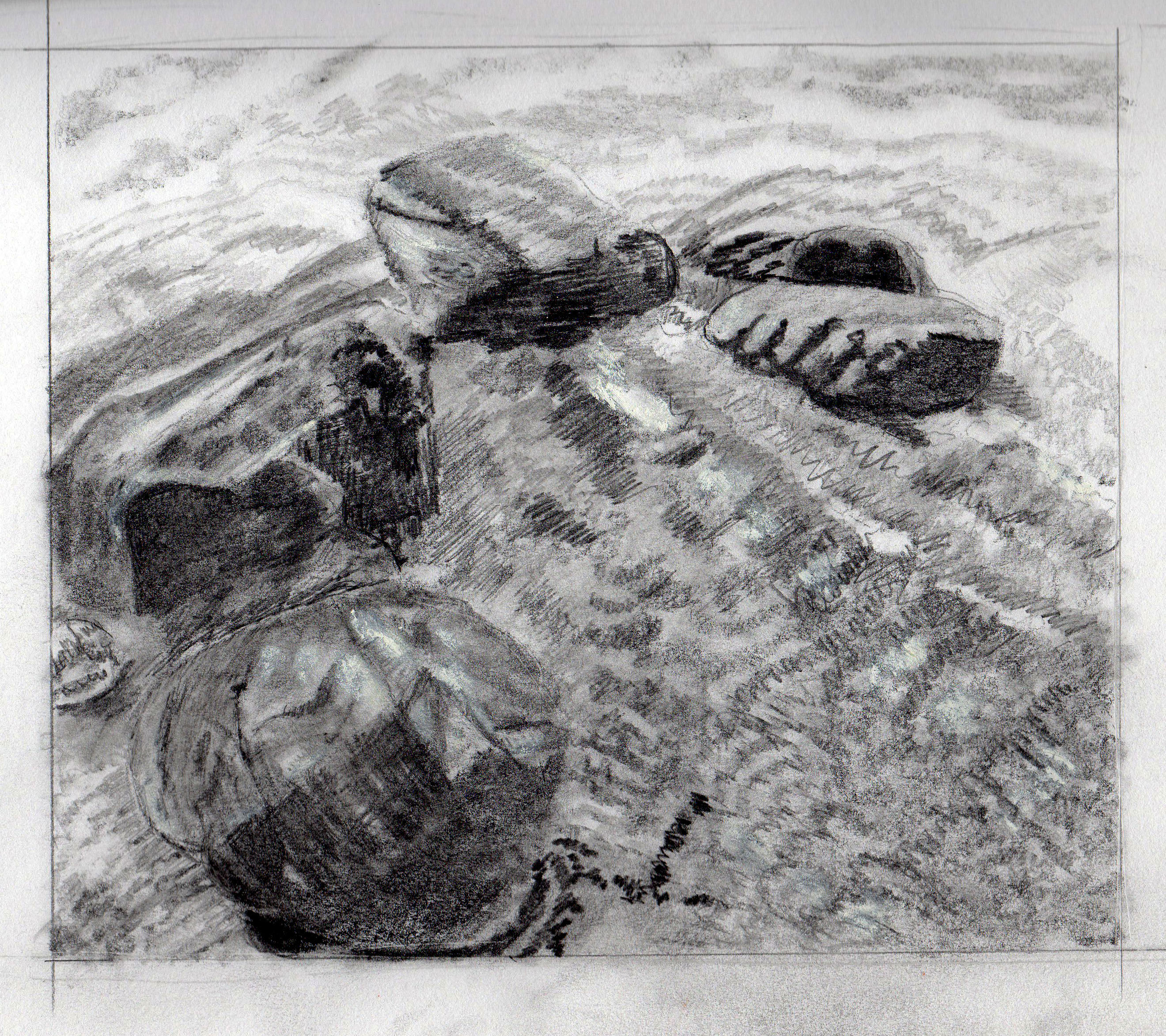 I love the Cut Out Filter in PS. I think it’s so fabric friendly and I love the shapes it develops. I did tweak the saturation, exposure and levels as well as some selective color alterations. I’m enjoying this week’s pic, which is a pic I chose to develop in the workshop I took a couple of weeks ago. I did start a drawing but I didn’t get too far in class. Instead of doing some drawing at night I went out and played with Cape Cod friends. I did do the drawing this week so I’ll share it, although I think I wasn’t so happy with the Fantasia pencils I was using. But it’s good enough for a first pencil study for my purposes, which is to eventually render this scene in fabric.