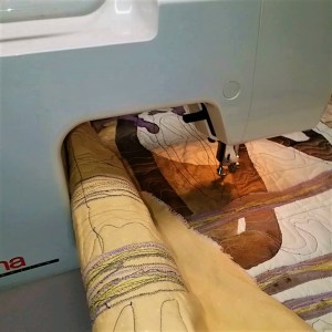 It’s been awhile since I’ve had my machine serviced. Knowing that it really needs a tune up, I was hoping to just get this piece done before it started acting up. Need I say, I was not so lucky! The stitch size is slipping and so as I go along, the stitch may start out as #2 and wham! it slips to #4 …what’s next!?