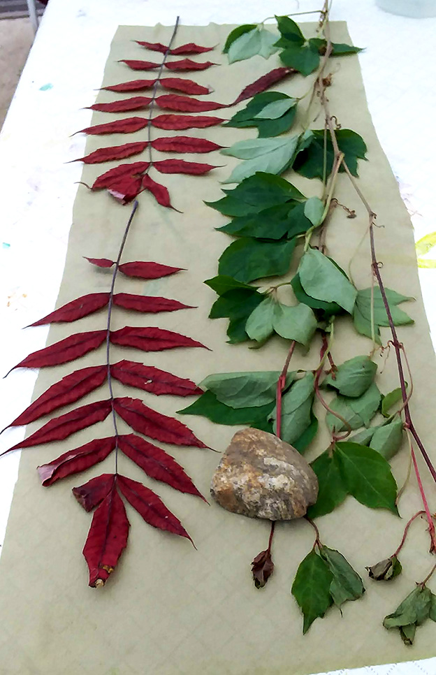Foraging for leaves and flowers to use in natural dying and printing is an art in itself.