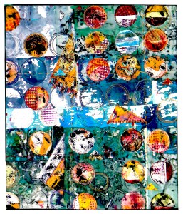 Janis finds joy in layering and combining mediums on various substrates: “I thoroughly enjoy the play with color, value and construct, particularly the improvisation which starts with one thing, an idea, a glimpse of a vision, perhaps something that captures my eye for a moment in time and it grows organically. I become focused on whatever piece I’m working on and follow my muse to find the way to my own original art.”